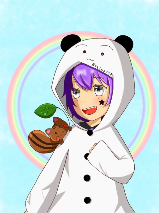 まゆげぱんだ。りす。梅雨っぽい。背景白or水色。