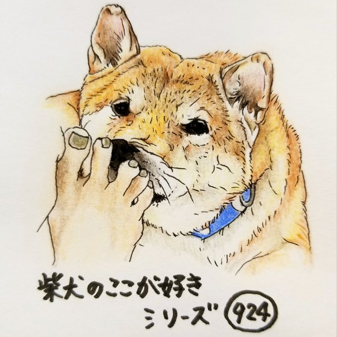 ウマウマをもらうとき 片足が浮いちゃうとこ。 待ちきれなくて地団駄踏んだからかな? #柴犬のここが好き #ここ柴 #柴犬 #ここ柴部 #イラスト