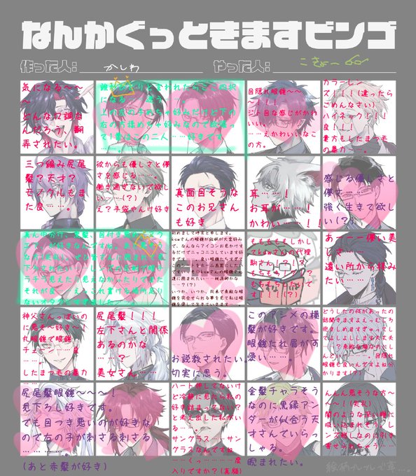 僭越ながらお借りしました…………! キモオタした自覚はあります。眼鏡が好きなんで自重はしませんご査収下さいませ……。← 文字書いてるうちにあれこの方も好きだ?ってなっていった(なんなら中央縦は揃う)のでむしろみんな好き説……みんな違ってみんないい眼鏡……。好きです……。 https://t.co/GmBt1knzcs