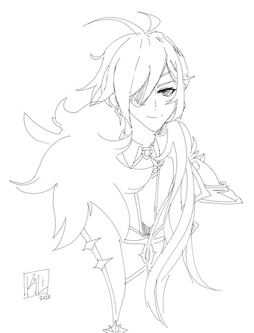 I haven't practiced drawing anime styles enough to do a full painting, so this is me practicing. (I'm pretty happy with the lines) I'm enjoying Genshin Impact and Kaeya is my favorite character