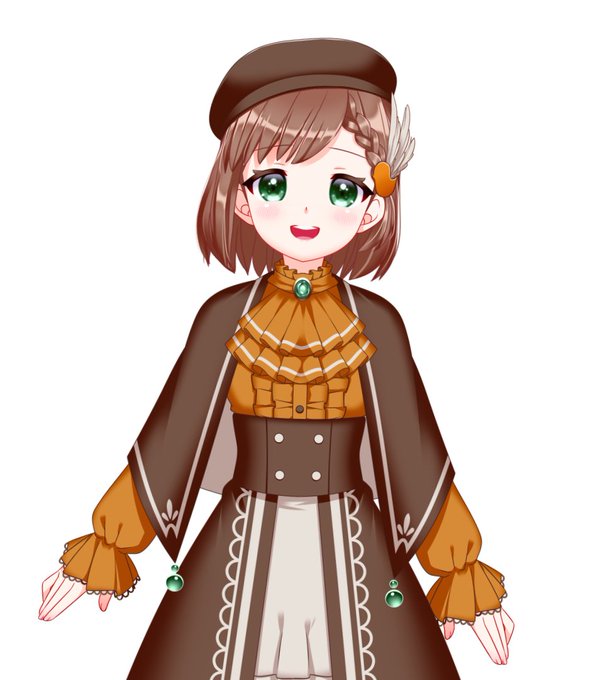 ヨーロッパコマドリイメージな自慢のお洋服です☺️編み込み前髪と髪留めも可愛いのです!ブローチは瞳とお揃い!✨