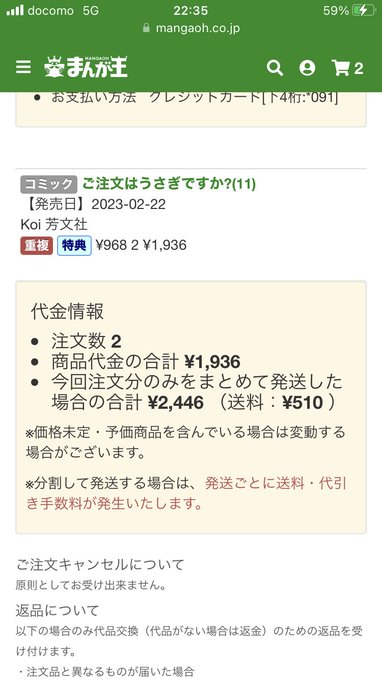 ごちうさ11巻の特典で千夜メグのポストカードが欲しいのでメロンで6冊再度購入ランダムなので当たるか分かんないけど。あとまんが王の千夜ちゃんの特典も保存用で2冊再度購入しました。 メロン送料高い…..