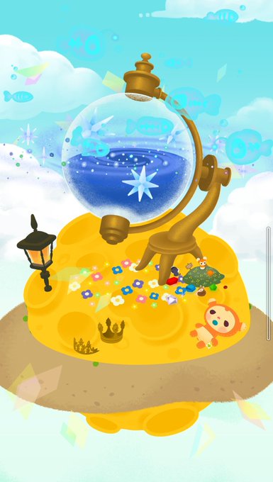 お月様をシュークリームみたいにしてる画像見てかわいいな〜って参考にさせてもらおうとしたら,それっぽく見える台座がなくてとりあえず合いそうなの挟んでみたけどこれはこれでかわいい気がする 一枚目とか土星のわっかとかユーフォーみたい