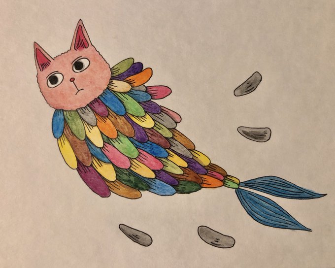 ネコウオ🐟 #イラスト #猫イラスト #色鉛筆