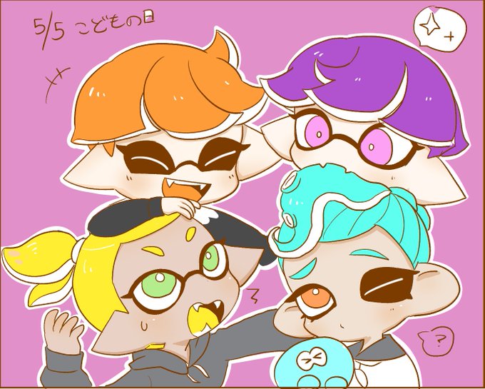 ミカくん(紫ゲソ)ミヌくん(オレンジゲソ) 双子の🦑でヒト型になりたて ミヌくんの後にミカくんが必ず付いてくる、一心同体
