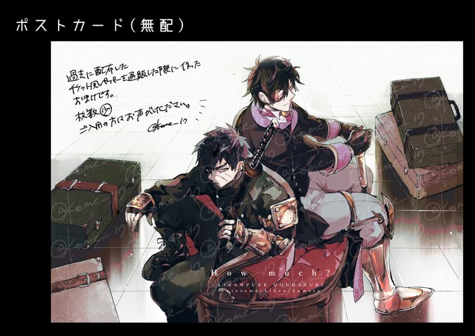 ●とうらぶ ・STEAMPUNK DOUDANUKI スチームパンク風パロ本。同田貫中心。 ・無配 ペーパー通販した際のポストカード こちらは卓上に置きませんので、ご入用の方はお手数ですがお声がけください。本、無配ともに残部少です。よろしくお願いいたします🙇♀️