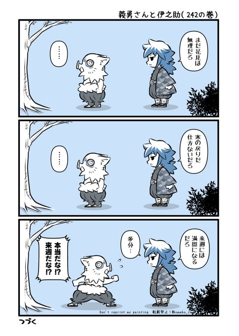 義勇さんと伊之助は2022年に始まり、今年の4月で3年目になります。ここでこのシリーズは一旦終わりになりますが、この2人のお話は季節やイベントを中心にまだ描き続けますので、引き続き読んで頂けると嬉しいです😊