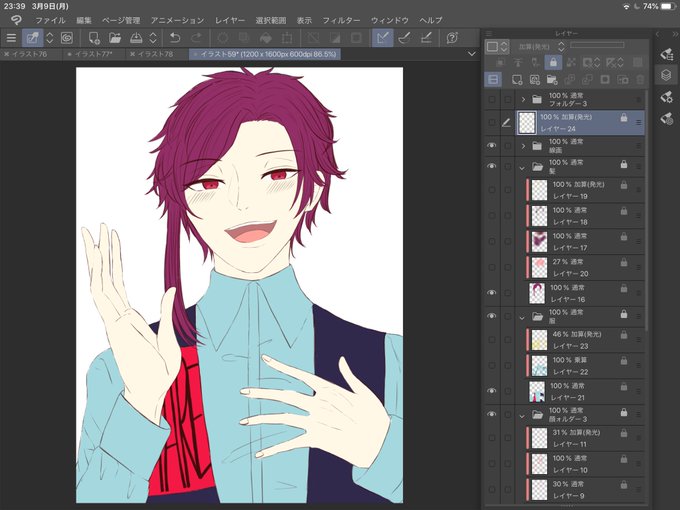 加算(発光)くん(俺の相棒)でハイライト、光が当たる部分にペンとかスプレーで塗ってく