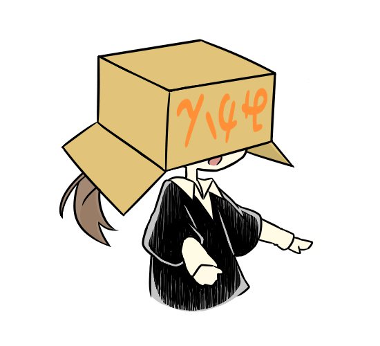 段ボール箱かぶって前が見えなくなるすずりの図