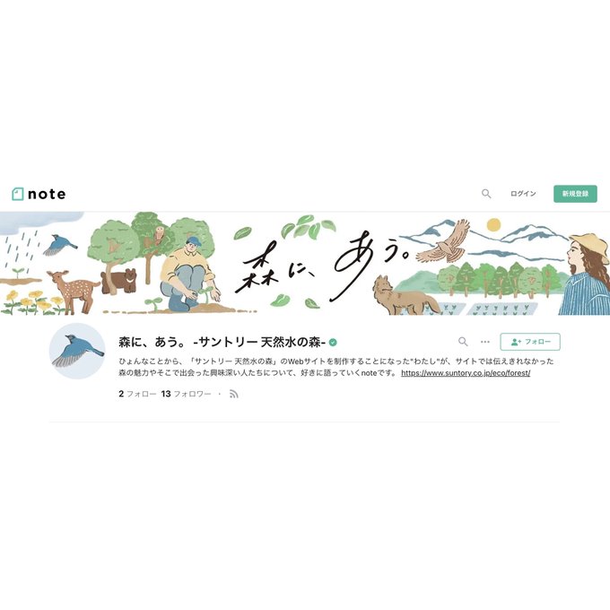 サントリーがnoteを始めました!もともとサントリーはDNAまで配慮した植樹や竹林の再利用など、天然水のために豊かな森を育み続けています。今回のnoteは、若いライターさんが綴る森の魅力や出会いの話。親しみやすい内容になっています。私はヘッダーイラスト担当しました。https://t.co/5z2cgM1DDa