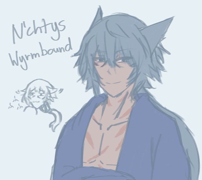 Eumilrant Elancourt, who is Ebahir’s foster dad, and a smol redesign of N’chtys’ name and his looks. I changed N’cht’s last name to something easier to pronounce. N’cht is basically an Ardyn (personality) x Noct (looks + some personality) Miqo from Dravania.
