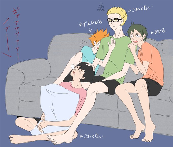 RTのホラー鑑賞な4人素材をお借りしました🙏 烏野一年生(男)でホラー鑑賞会😈