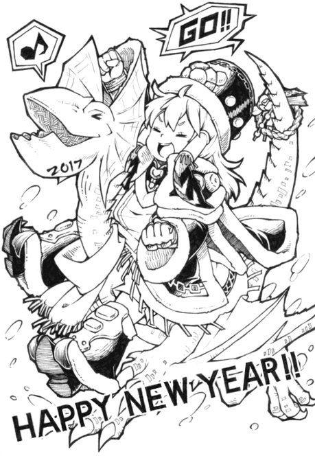 今年の年賀状 モンハンの新作が楽しみな気持ちも込めて…