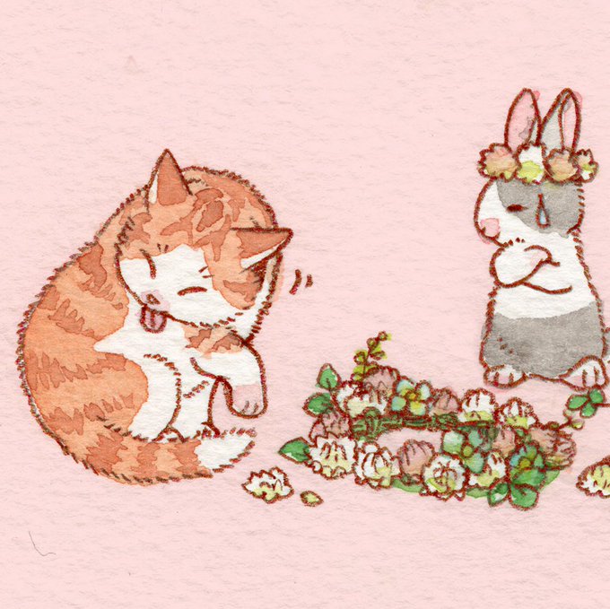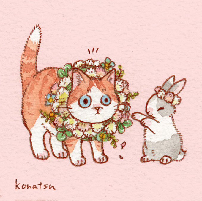 猫に花飾り