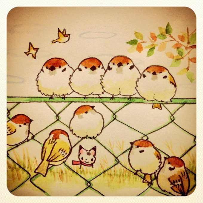 ラクガキスケッチ:フェンスにぽこぽことまる雀