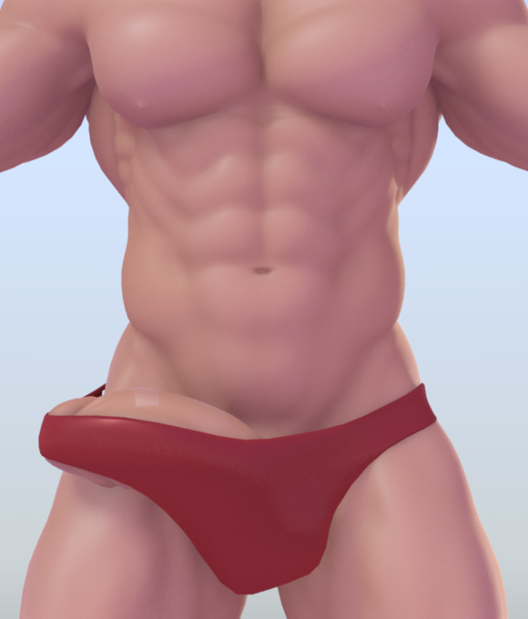 プレビューと大差ないけど一応レンダリング。← テクスチャーまだだから亀頭の色も競パンの柄もなし。 →トポロジ まだざっくり割り お尻側はまだ作ってないけど競パン食い込んで肉がはみ出てる感じにしたいところ。