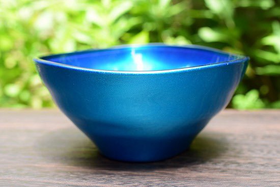 YOSHIHIKO FUJIIさんの「メタルブルー フリーボウル」。青空や海を思わせるような解放感のある綺麗な色合いの器です。飾って見て楽しめる、使って贅沢なひと時を楽しめる、日常に華を添えてくれるとても綺麗な食器たちです。