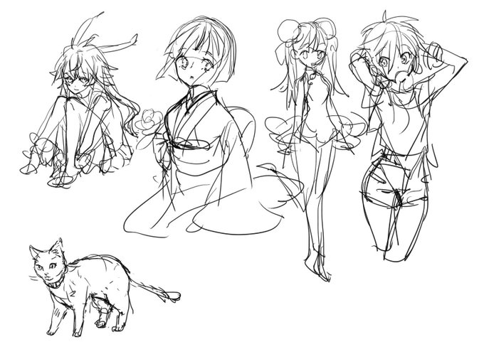 大ラフ(二枚目)から割り切った線画を起こして(三枚目)ちょっぱやで色を塗る(四枚目)試みをしているらくがきです araize... 最近はやりの目の描き方を試しているze