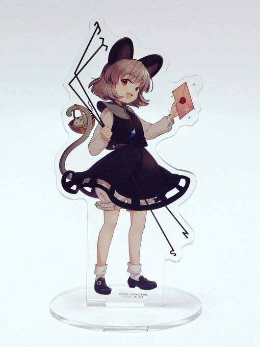 続きまして、メインビジュアル、等身大パネルのナズーリンさんの『アクリルスタンドフィギュア』です!高さは130mm程度となります。よろしくお願いいたします!🐭