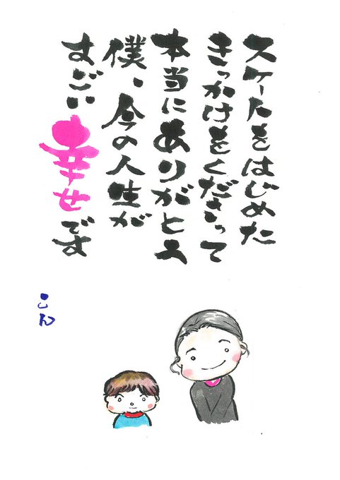 左はうのさんがスケートをはじめた原点の絵(三年くらい前に描いたものです)を、右に今、自分のスケートを取り戻したうのさんの絵をこれからのエールを込めて並べてみました。