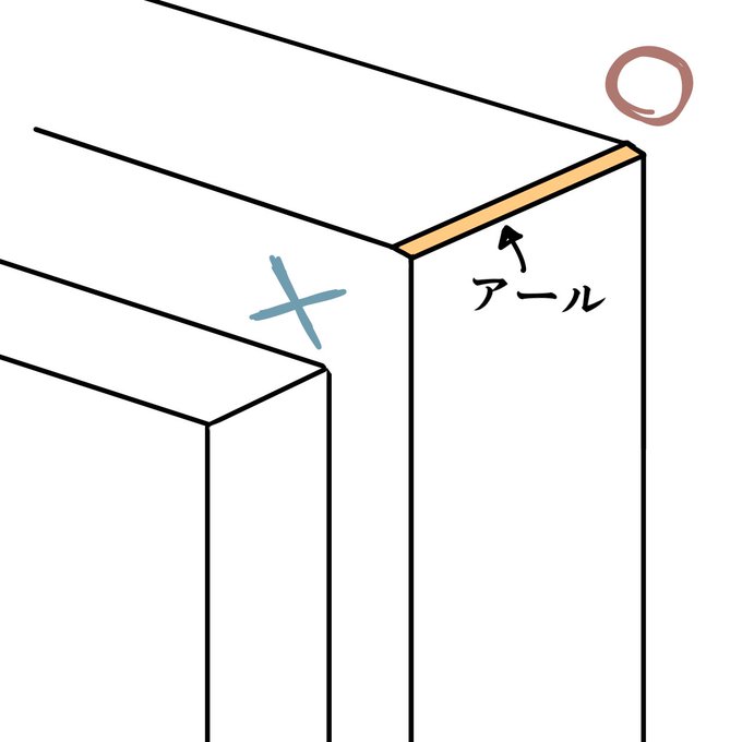最近、画塾で習ったんだけど、世の中の工業製品はほぼ「R」っていうのが取ってあって、要するに角を尖らせると危ないから角に1面入っていて丸みがかってるらしい。一気にそれっぽくなるから、デッサンする時や物書く時に参考にしてみて..!!( ◜௰◝ )