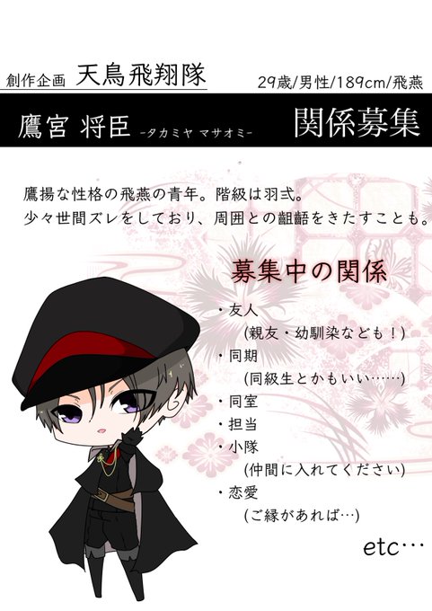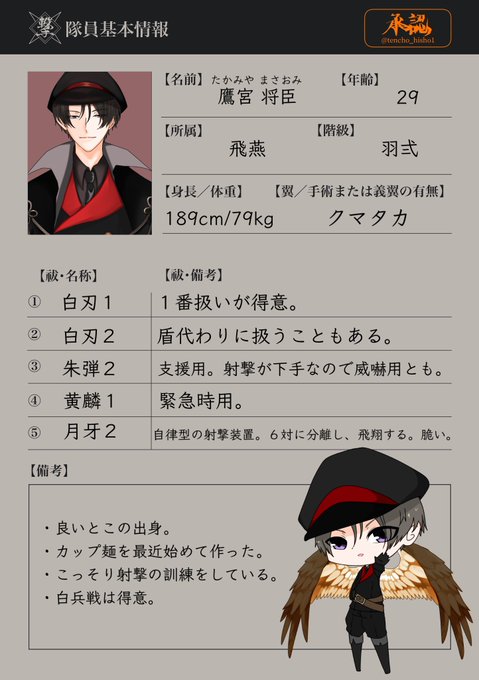 こちらの素敵企画、天鳥飛翔隊【@tencho_hisho1 】様へ参加をさせていただきます。