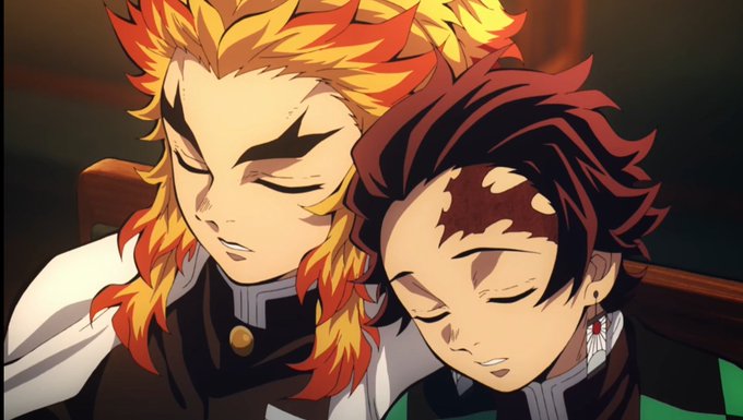 Inosuke mimindo no colinho do Zenitsu e o Tanjiro no ombro do Rengoko são totalmente perfeitos no mangá e no anime