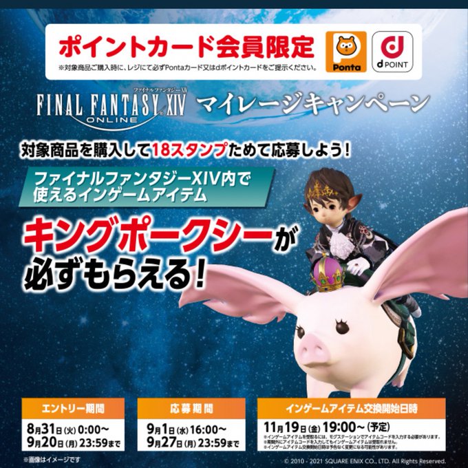18スタンプ貯まりました‼️ キングポークシー(コード) GETしました❣️(*´꒳`*) 入力は11月19日の17時〜(予定) からですので大切に保管しときましょう(╹◡╹) 入力場所はモグステーションの アイテムコードからになります☺️ #キングポークシー #FF14 #ローソンFF14 #ローソン