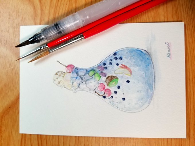 #イラスト #透明水彩 #色鉛筆画 #芸術の輪