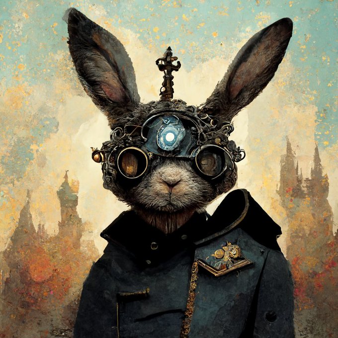 スチームパンク×ウサギ なんか人間従えてる方がいるような… #スチームパンク #steampunk #midjourney