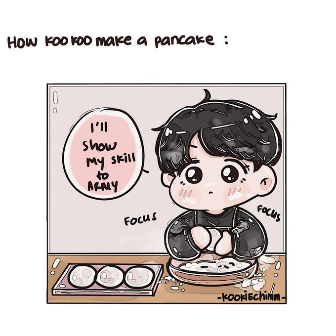 This what I imagine when kookie make a pancake hahaha 😆🐰~~