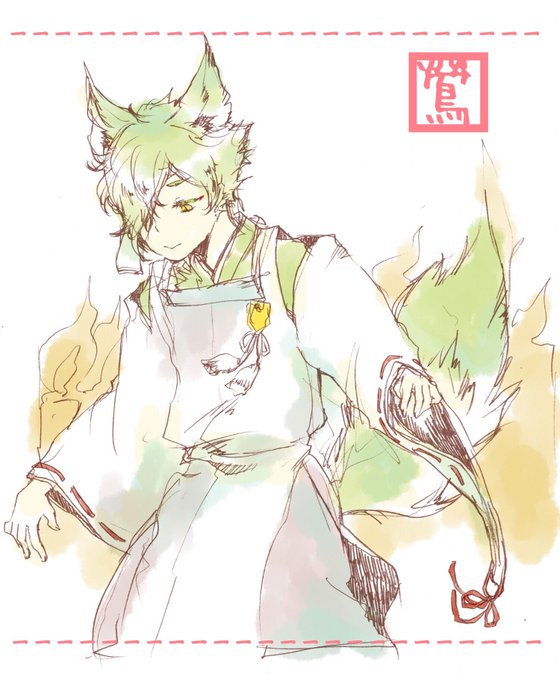 らくがき。 いつぞやの診断メーカー様のお狐様鶯丸。衣装は軽率に自分の大好きなキャラ(黒狐)から記憶を頼りに拝借&改造。