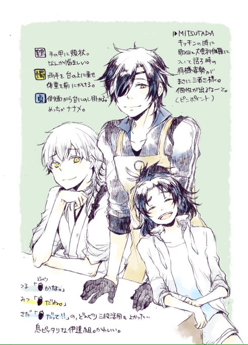 1話みたので活撃審神者らくがき ※2枚目はネタバレでもなんでもなく、早く鶴丸と並んでくれという妄想。