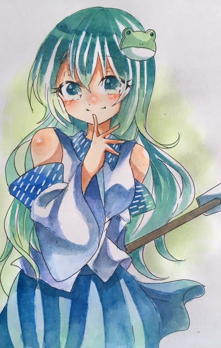 #深夜の真剣お絵描き60分一本勝負 早苗さんを描いてみました。お久しぶりです。