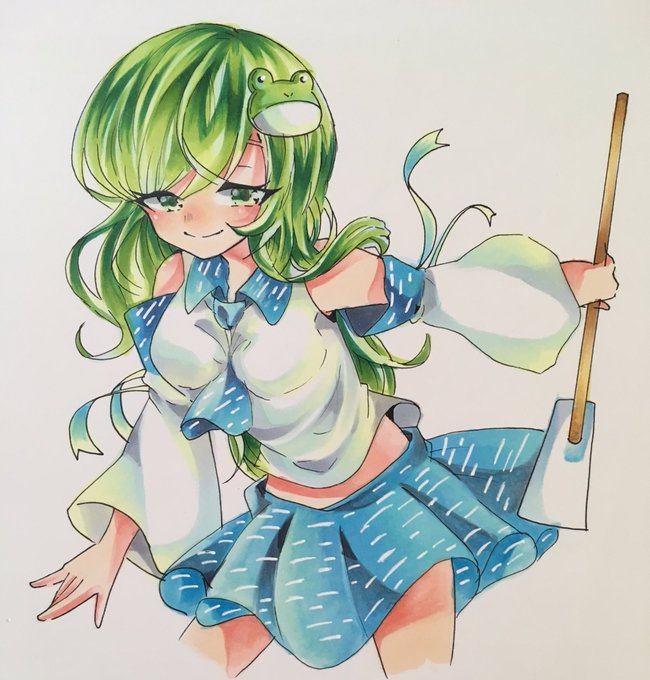 おはようイラスト。東方より早苗さん。髪の着色が上手くいったので満足だ。