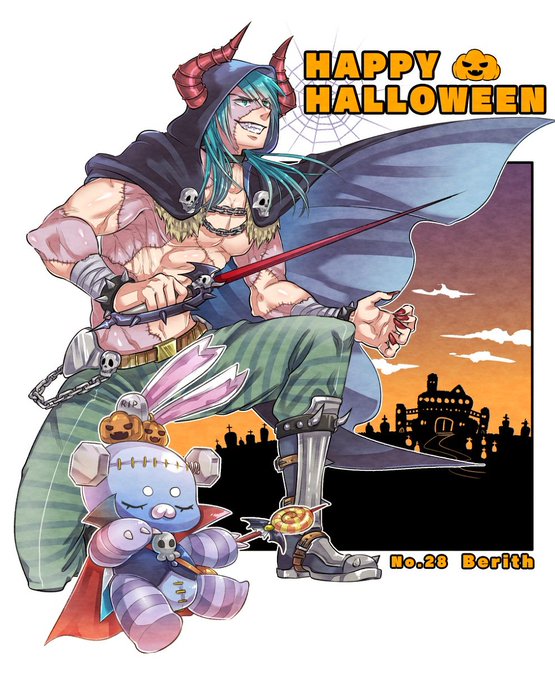 俺ハロウィン衣装のカイム君とベリト様(+ミミちゃん)描きました。カイム君は吸血鬼っぽい燕尾服着て欲しい。ベリト様は小学生だから魔王っぽくてトゲトゲしてる物を付けて欲しいし、趣味が入り過ぎてゴリゴリ体型になってしもた。 #メギド72イラスト