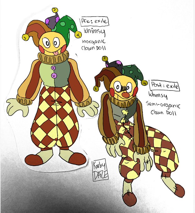 Antic is clown hinted to being of whimsy’s species. Cunning,sketchy and determined to reach his goals no matter the cost. Current objective is unknown at the moment has a great interest in our protagonists , he also seems to know more about Kore than he lets on. #clownical