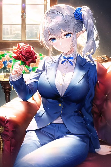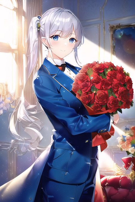バラの花束と男装のエルフのお姫さま #AIart #AIイラスト #NovelAI