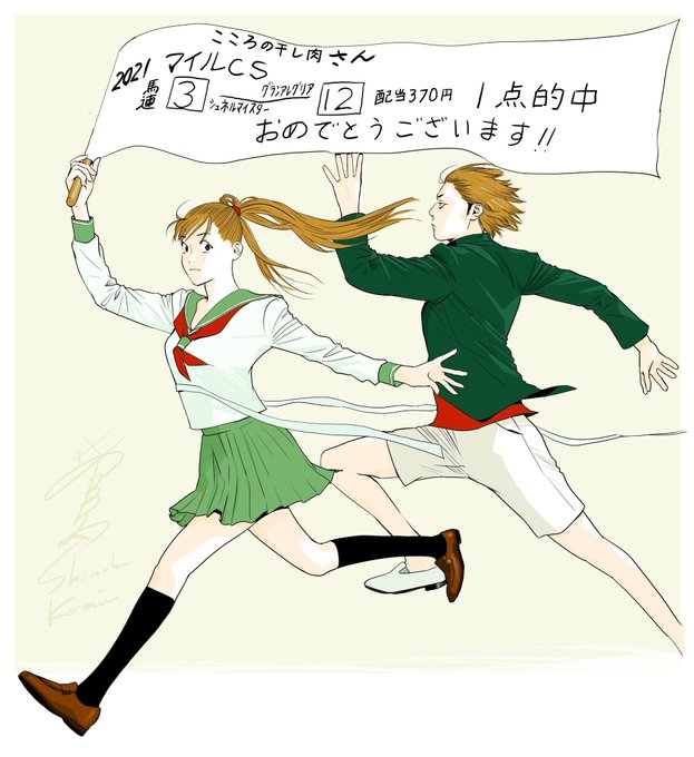 甲斐谷忍先生からマイルCSの馬連1点的中のお祝いイラストをいただきました!!