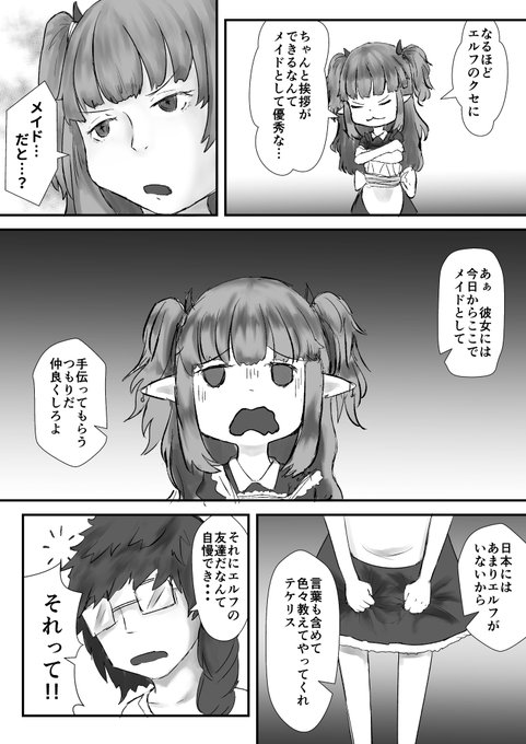 以前描いた褐色奴隷エルフのスーちゃんと、新キャラの悪魔娘のテケリスちゃんによるお話