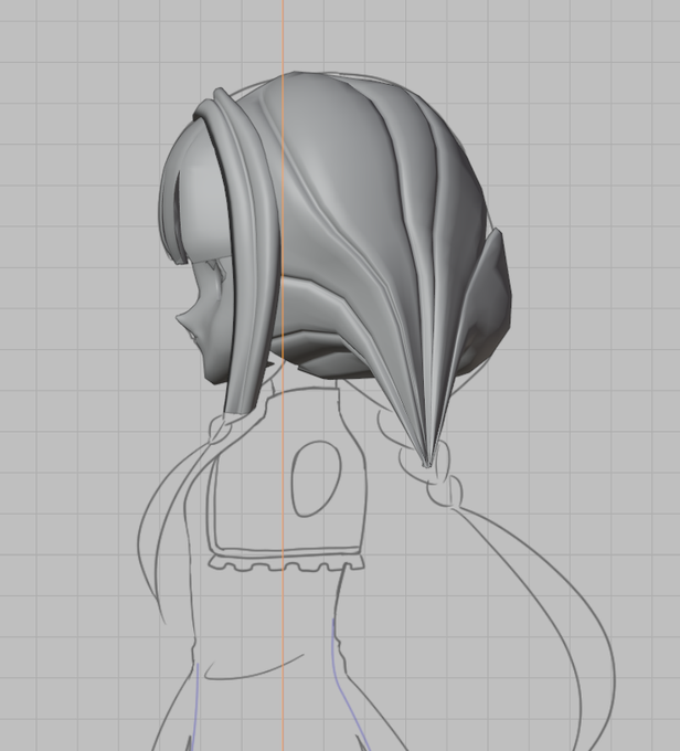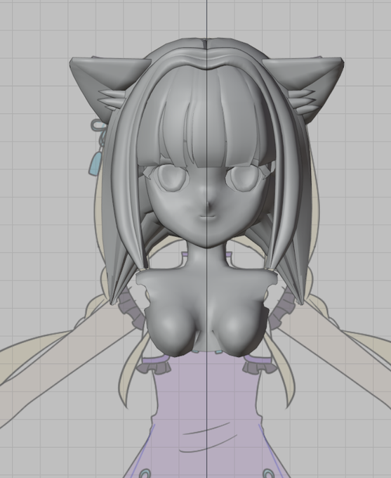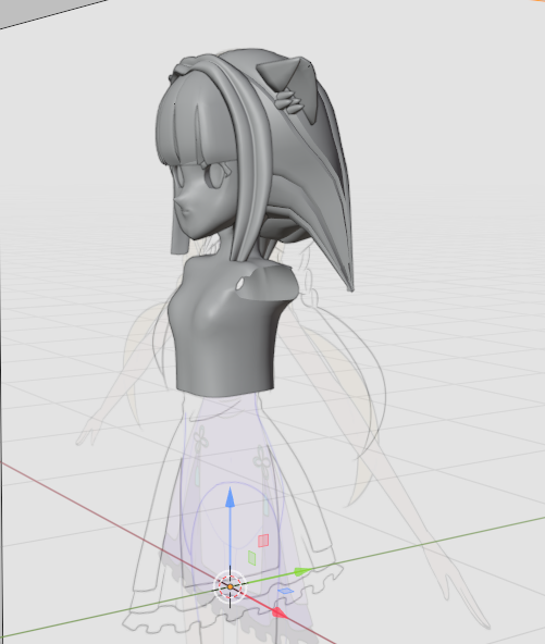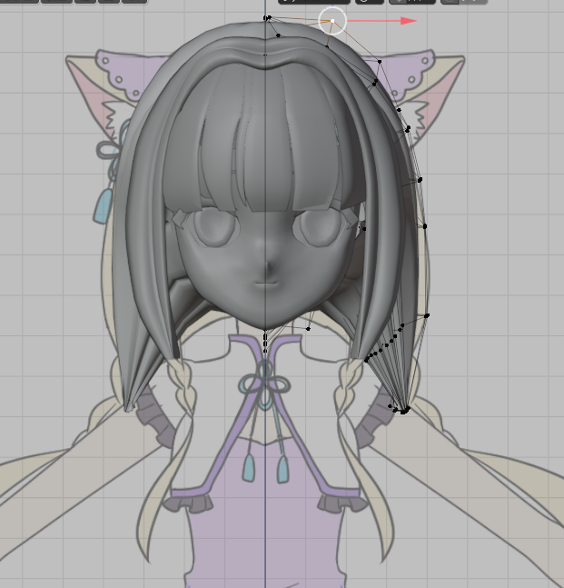 みつあみのアドオン部分は全部バッサリ諦めて、猫耳だけ。しかし、回転するときにどう設定しても3Dカーソル基準で回ってしまってたなぁ。力技でなんとか形にしたが、イマイチだった。