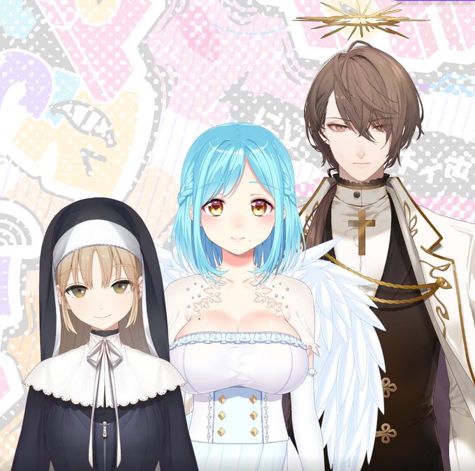 左から順に ・シスター ・女神 ・天使のコスプレをした成人男性 です。