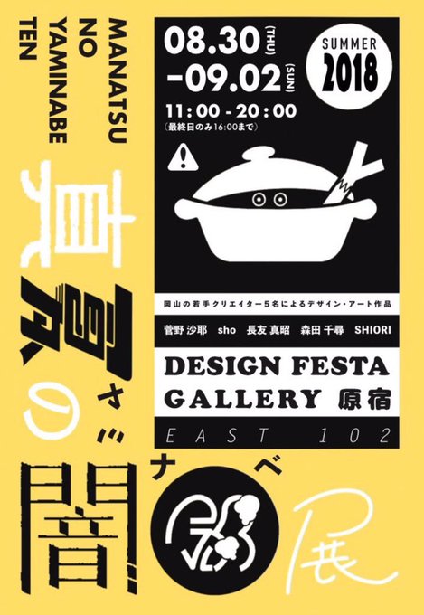 Design Festa Galleryにて東京でグループ展を行います!期間は8/30-9/2まで。【真夏の闇鍋展】というテーマで5人で参加してます。ぜひぜひお越しください〜