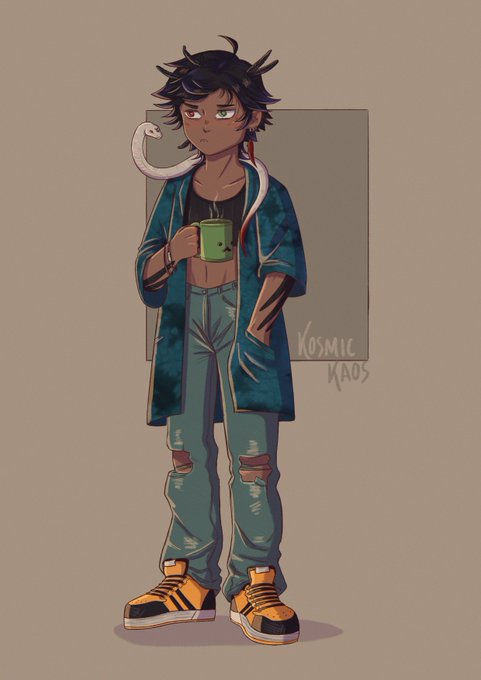 an enby raven boy and their snake!