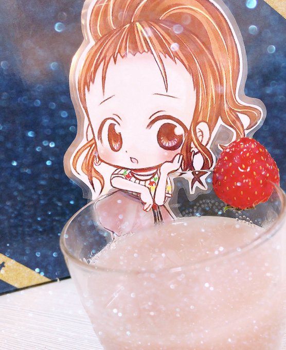 えーがなかえでぃの衣装イメージで、ストロベリーとバナナスムージーにきな粉を入れて、美容にいいドリンクに仕上げました。