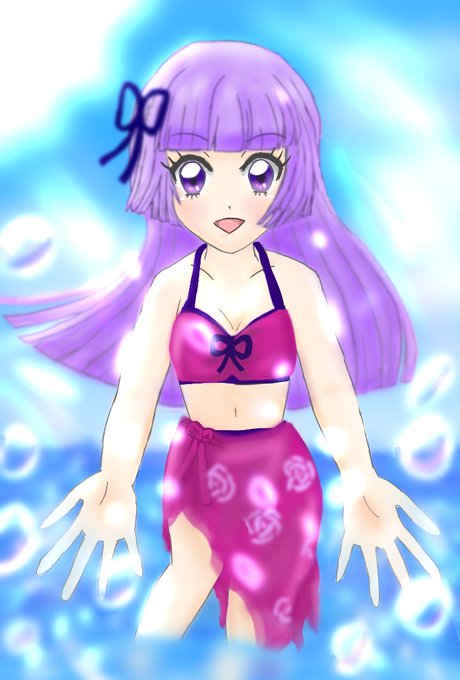 暑くなってきたので水着スミレちゃん描きました! (この前描いた絵の方が差分でした)