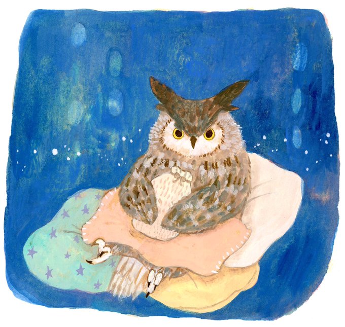 暖かくして、お休み下さいね🛌 #illustraion #イラスト #ミミズク