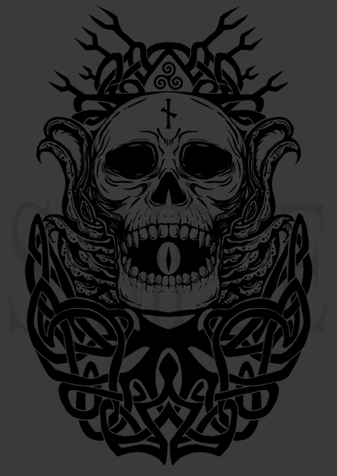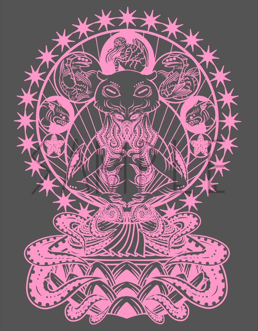 こちらのイベントで新作のTシャツも置かせていただきます。今回の神話生物は「シアエガ」……ドイツに封印されていることからケルト紋様とルーン文字を入れてデザインしています。 https://t.co/2iHtMlP0pq