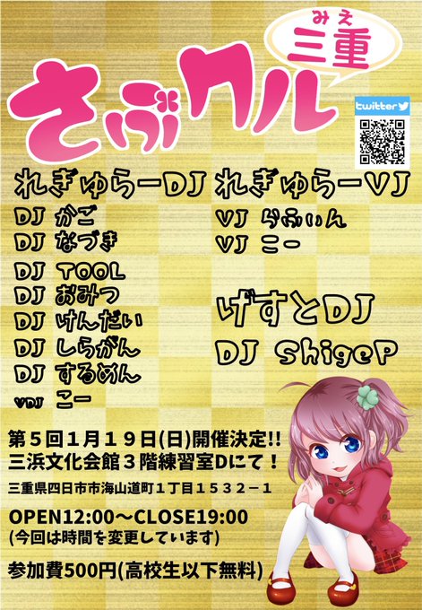 📢#さぶクル 1/19(日)らふぃんさん・けんだい・しらがん