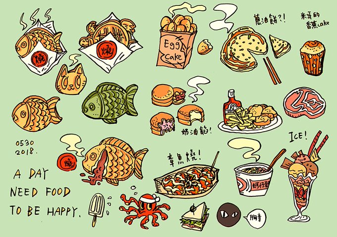 就這樣畫下來很多食物